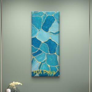 “Golden Shores of Renewal” is a mesmerizing artwork inspired by the Japanese philosophy of Kintsugi, where broken objects are repaired with gold to highlight their flaws as unique marks of resilience and beauty. This piece captures the essence of healing and transformation, likening the journey of mending oneself to the soothing waves of a shore meeting the vast, ever-renewing ocean. The shimmering golden accents reflect the triumph of overcoming life’s adversities, symbolizing how our scars make us stronger and more beautiful.