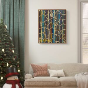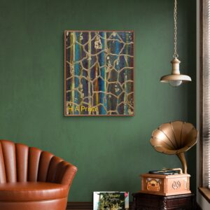 Medium: Created using Gamblin Artists Oil Paints, epoxy resin, gold leaf, UV clear resin, and unique glitters. The base features multiple layers of Gesso and acrylic paints for added depth and texture, carefully primed for durability.