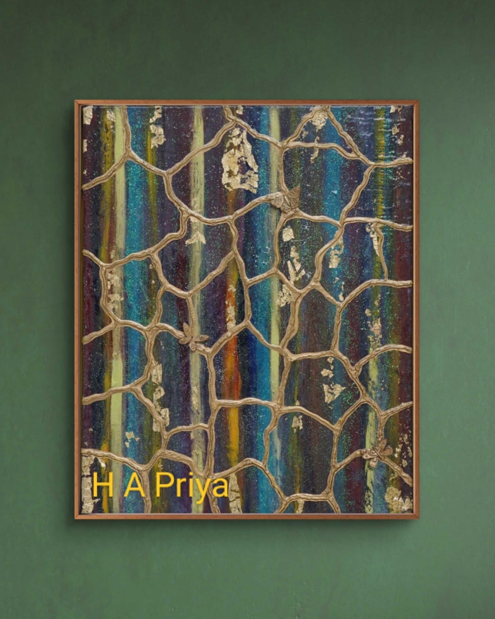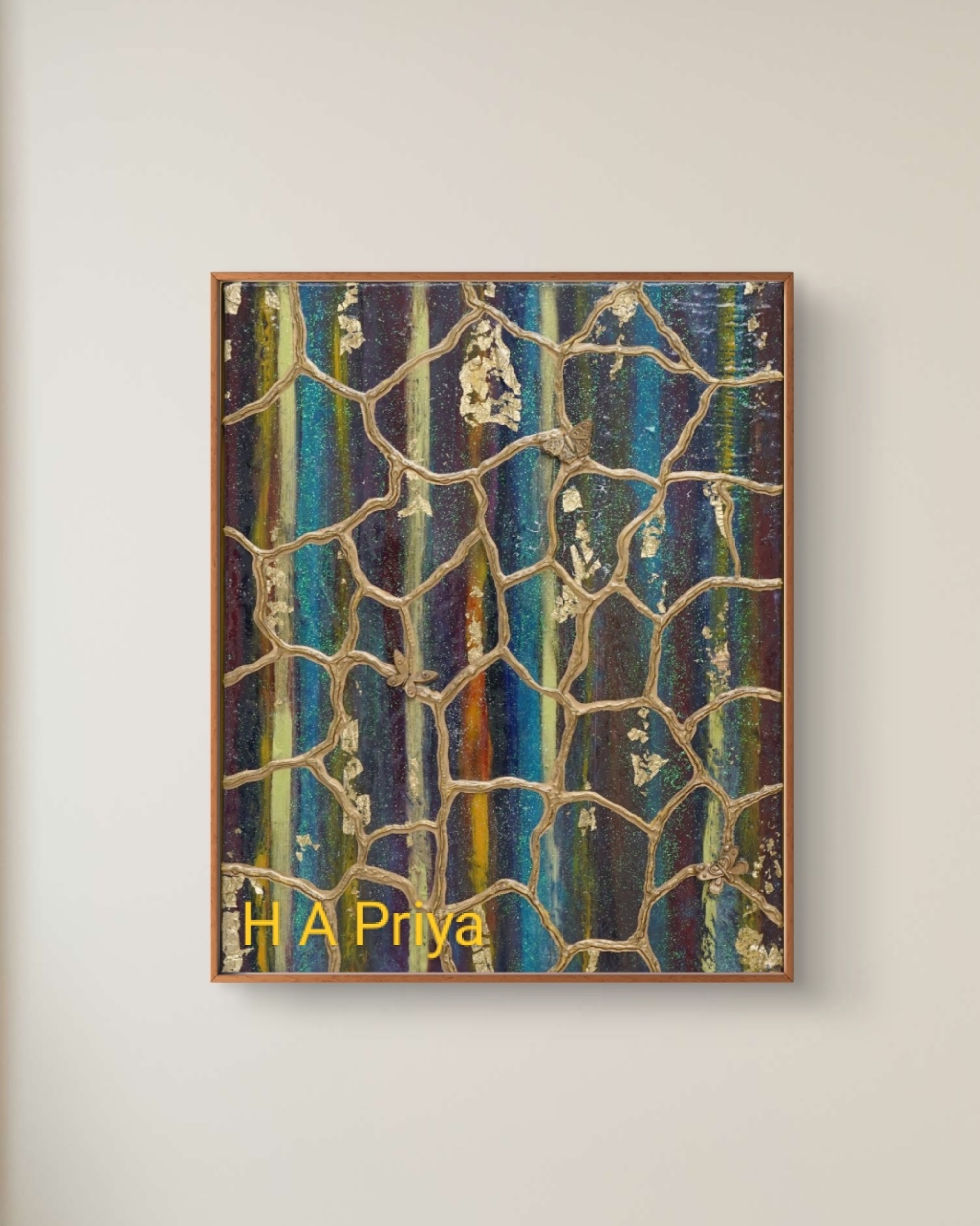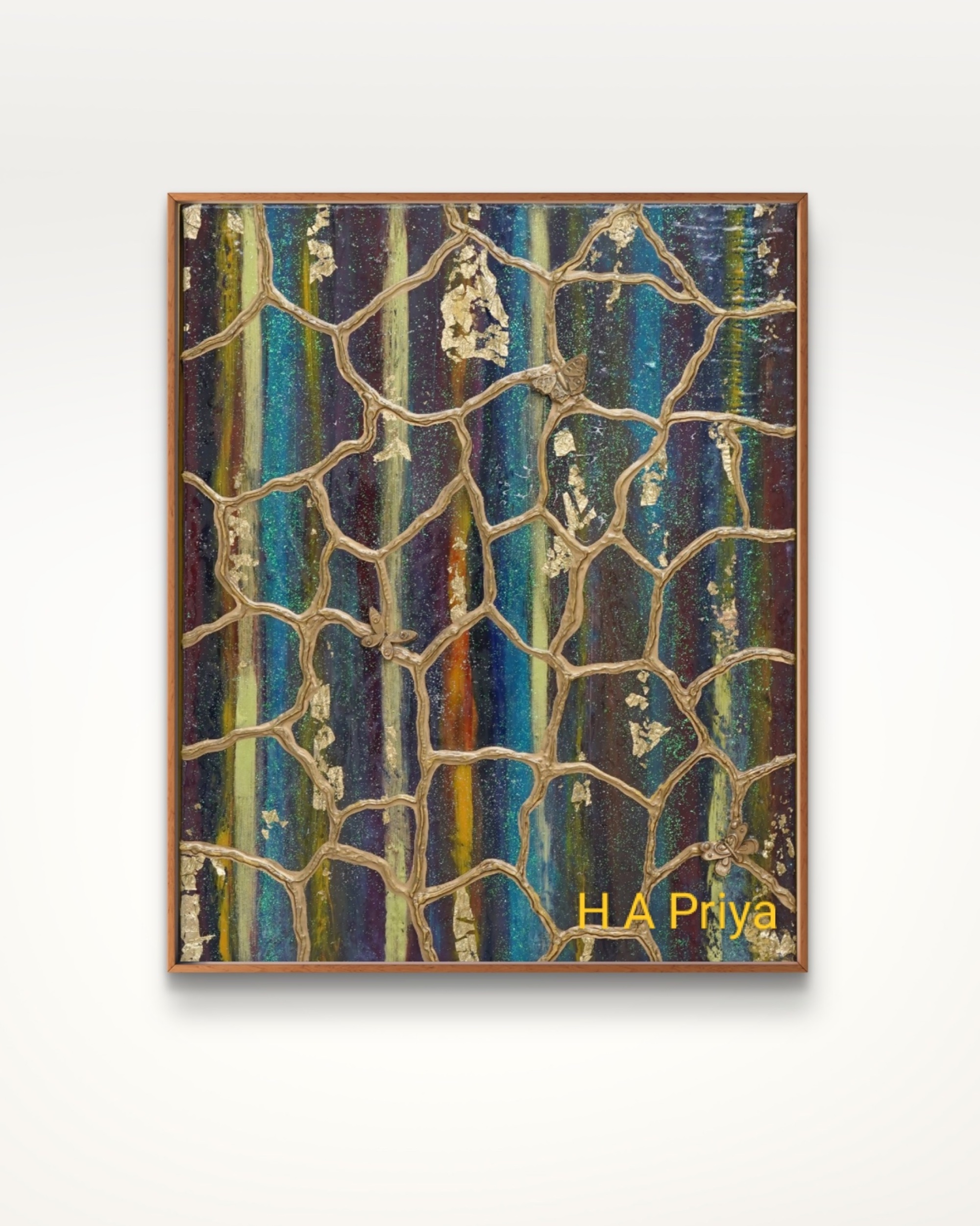 “Wings of Resilience” is a profound blend of oil and resin, created with oil paints and resin models, delivering a powerful message of healing and transformation. The artwork reflects the artist’s personal journey through healing, paralleling the metamorphosis of a butterfly. Just as a caterpillar endures a painful transformation to emerge as a butterfly with beautiful wings, we too experience hardships and struggles that shape us. The butterfly symbolises how, through life’s challenges, we evolve into our best selves—often unaware of the beauty and strength we have gained.